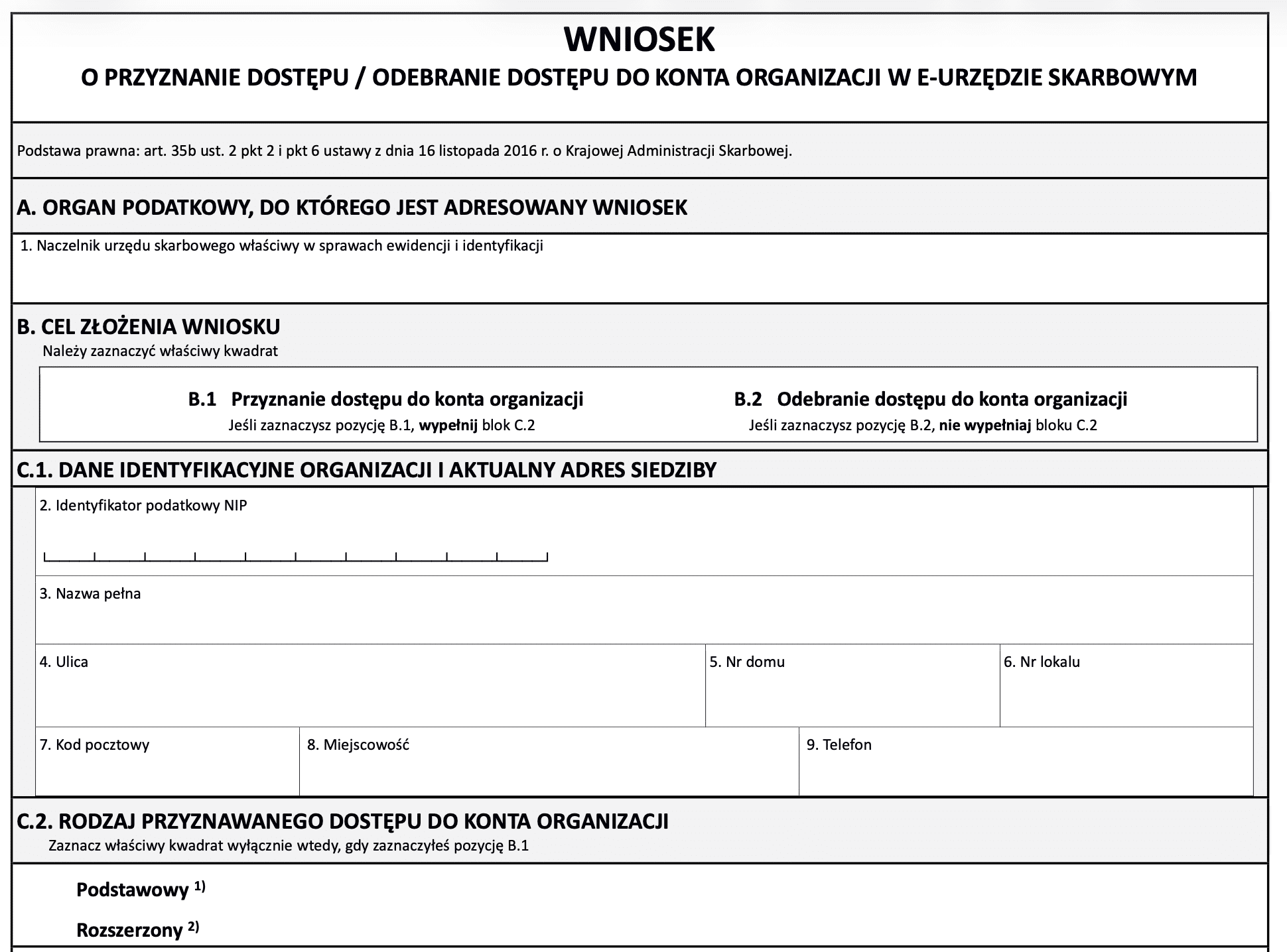Jak wypełnić wniosek o dostęp do konta organizacji