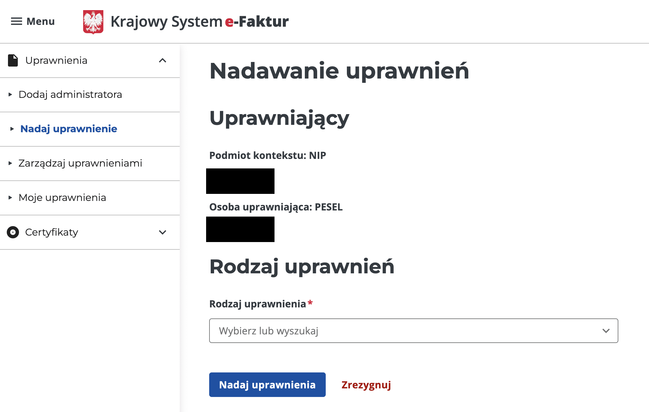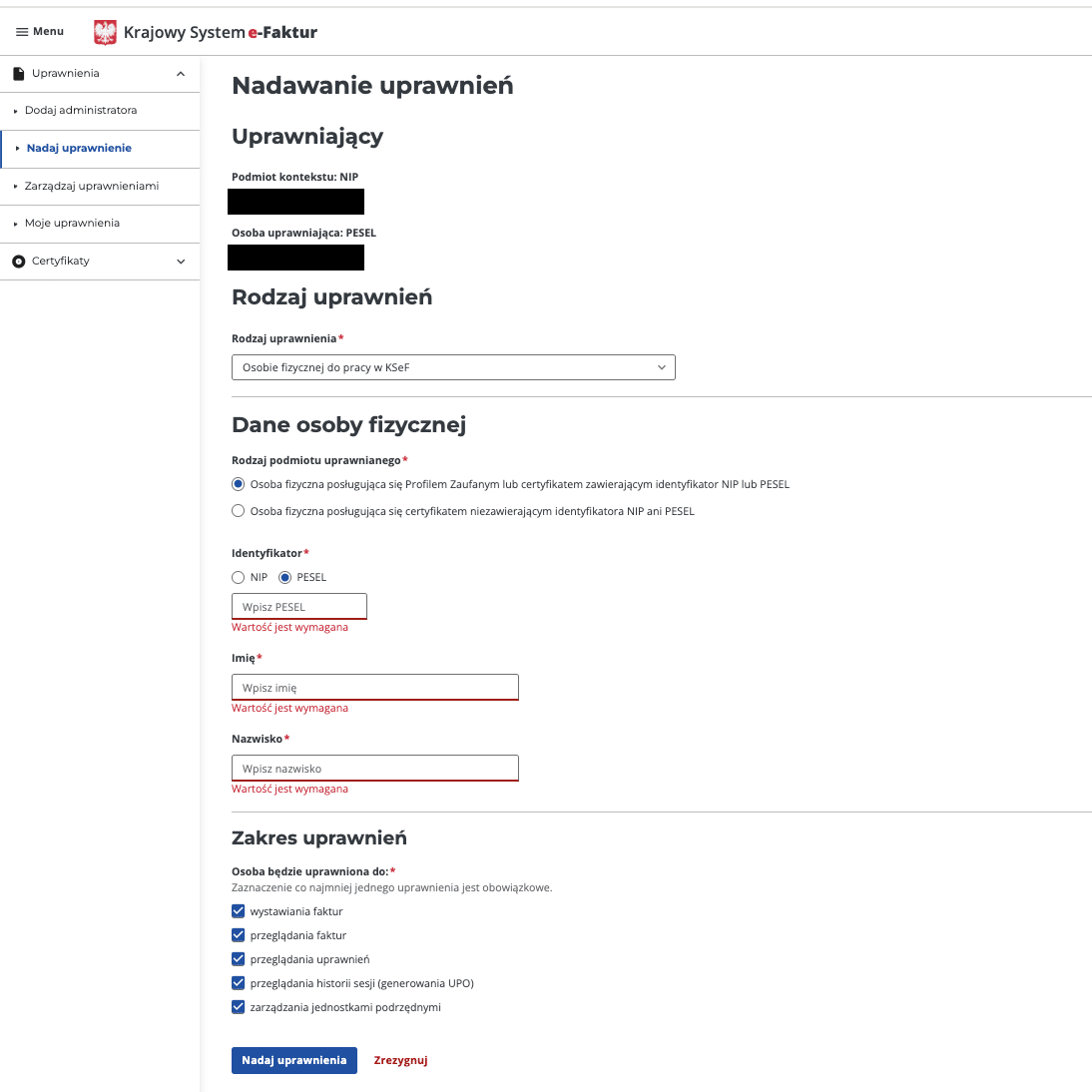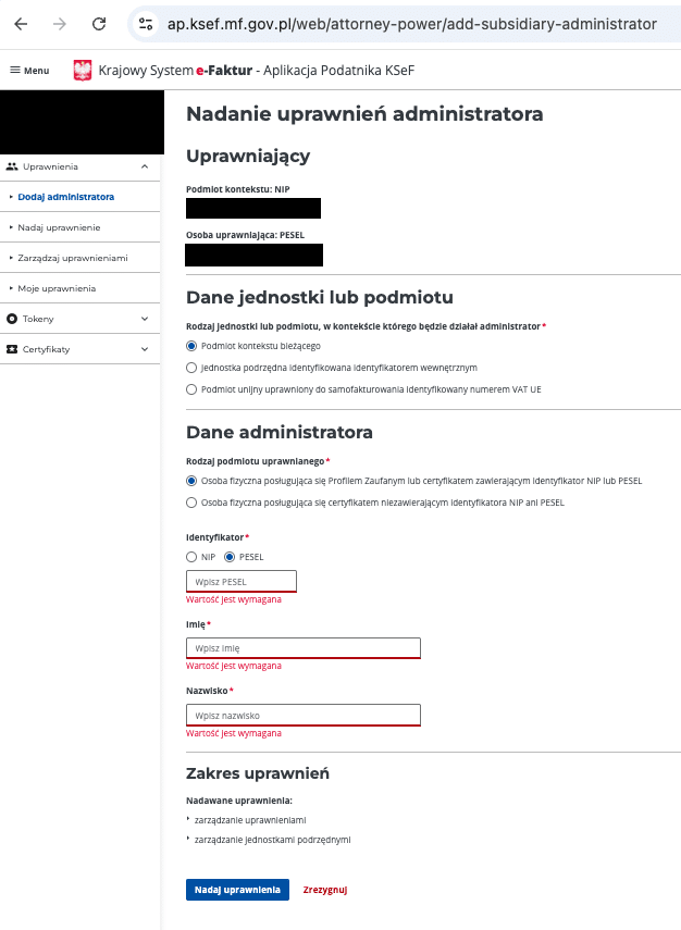 Twoim PESEL jako osoby nadającej uprawnienie