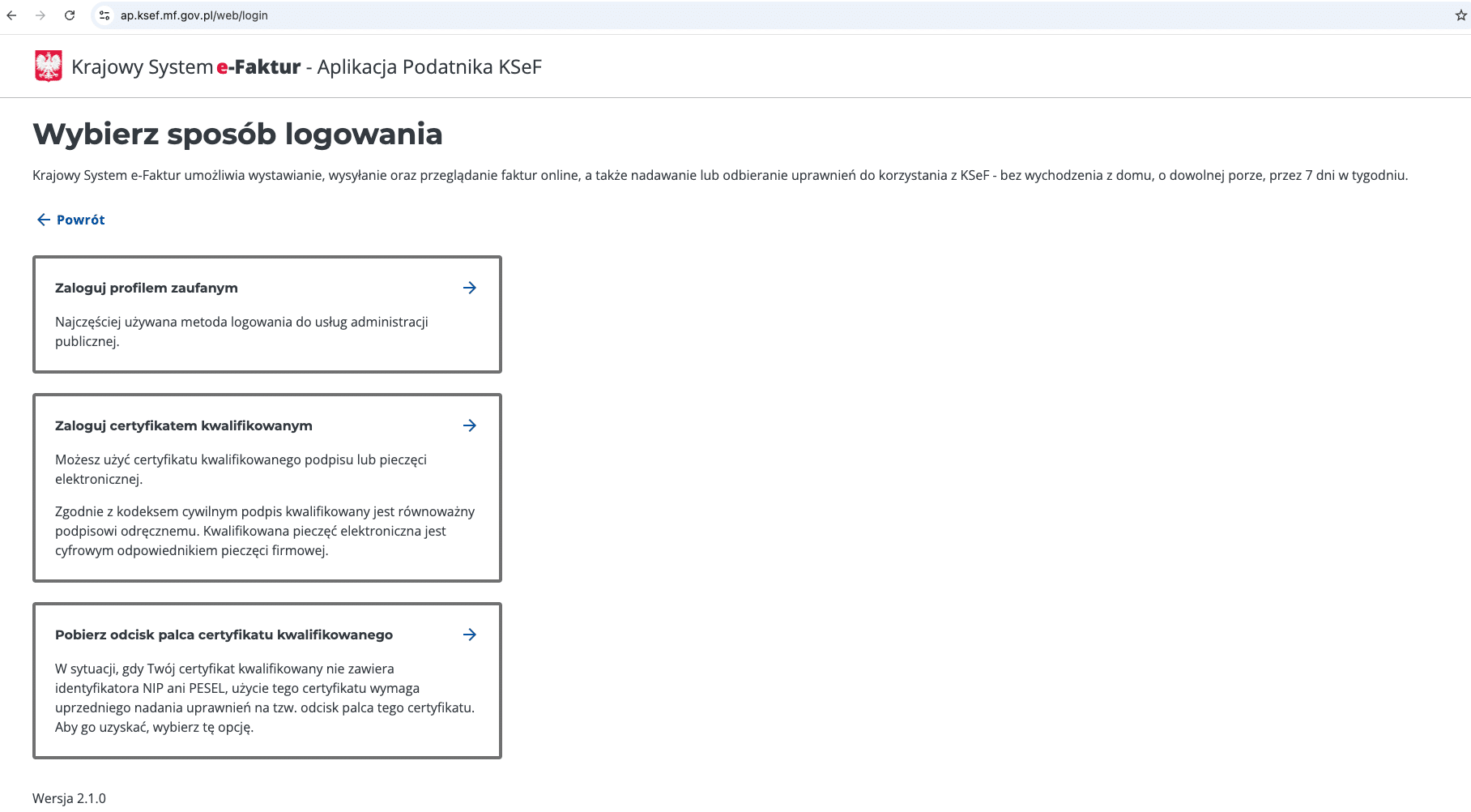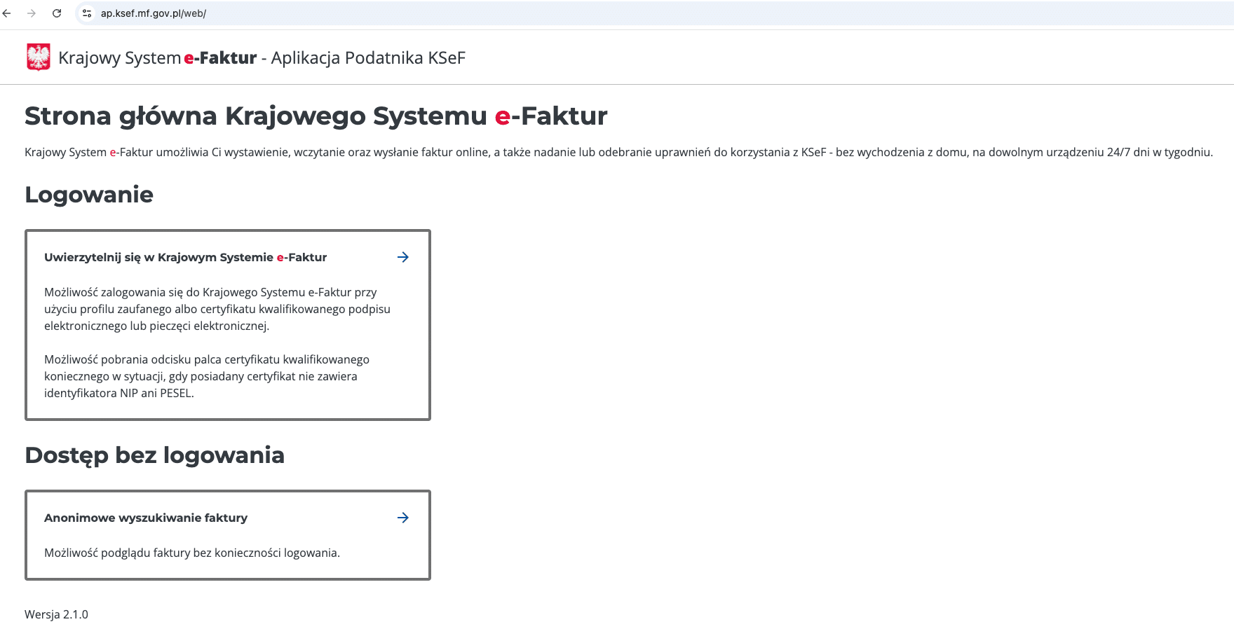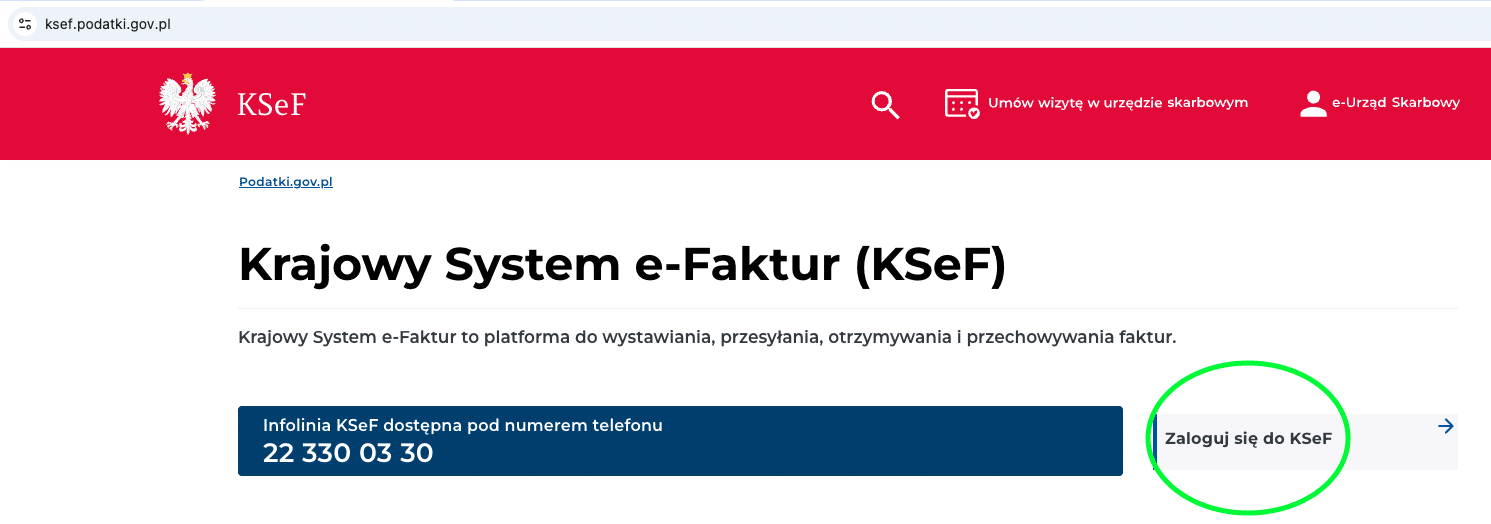 Kliknij „Uwierzytelnij się w Krajowym Systemie e-Faktur”.