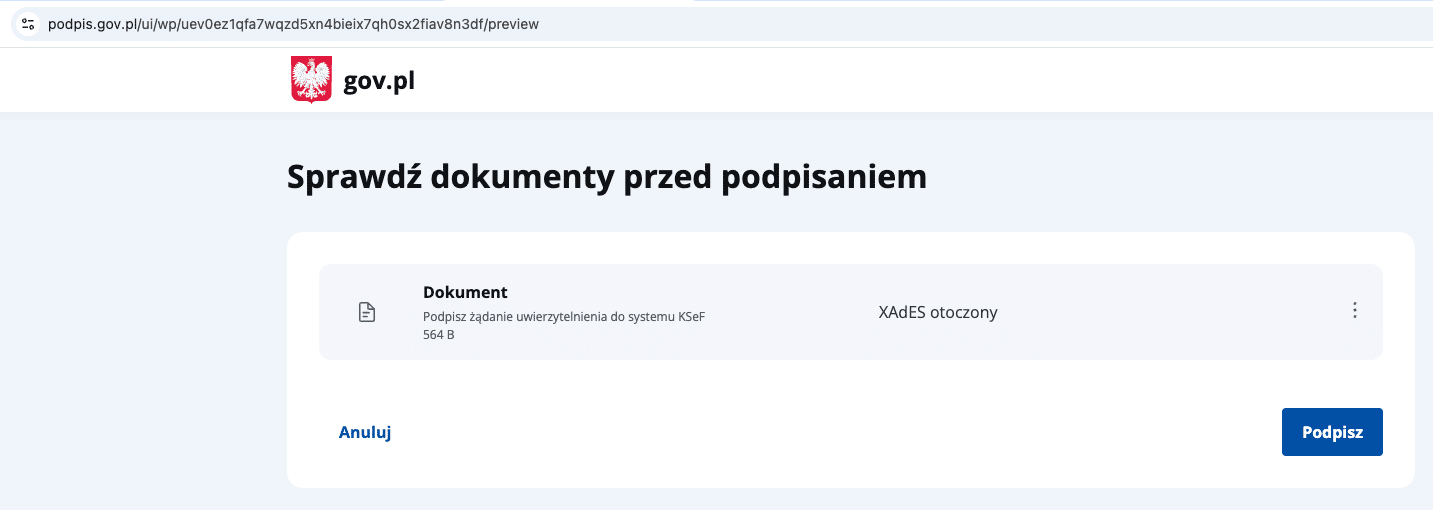 Warto upewnić się, czy wszystko się zgadza. Dokument to tylko techniczna treść potwierdzająca próbę logowania. Jeśli wszystko wygląda prawidłowo, kliknij „Podpisz” i dokończ logowanie np. przez profil zaufany.