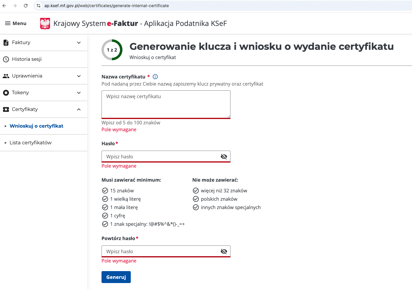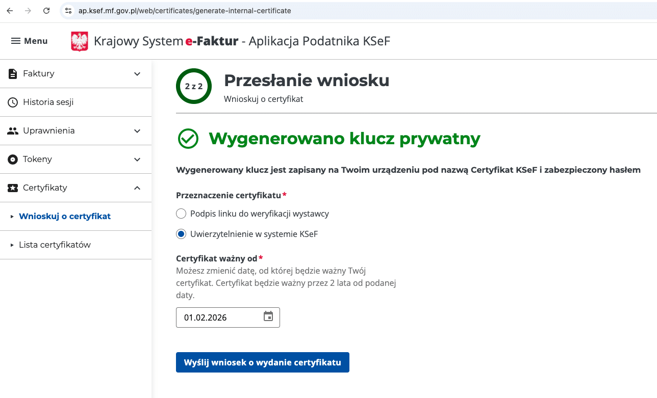 8. Generowanie certyfikatu KSeF